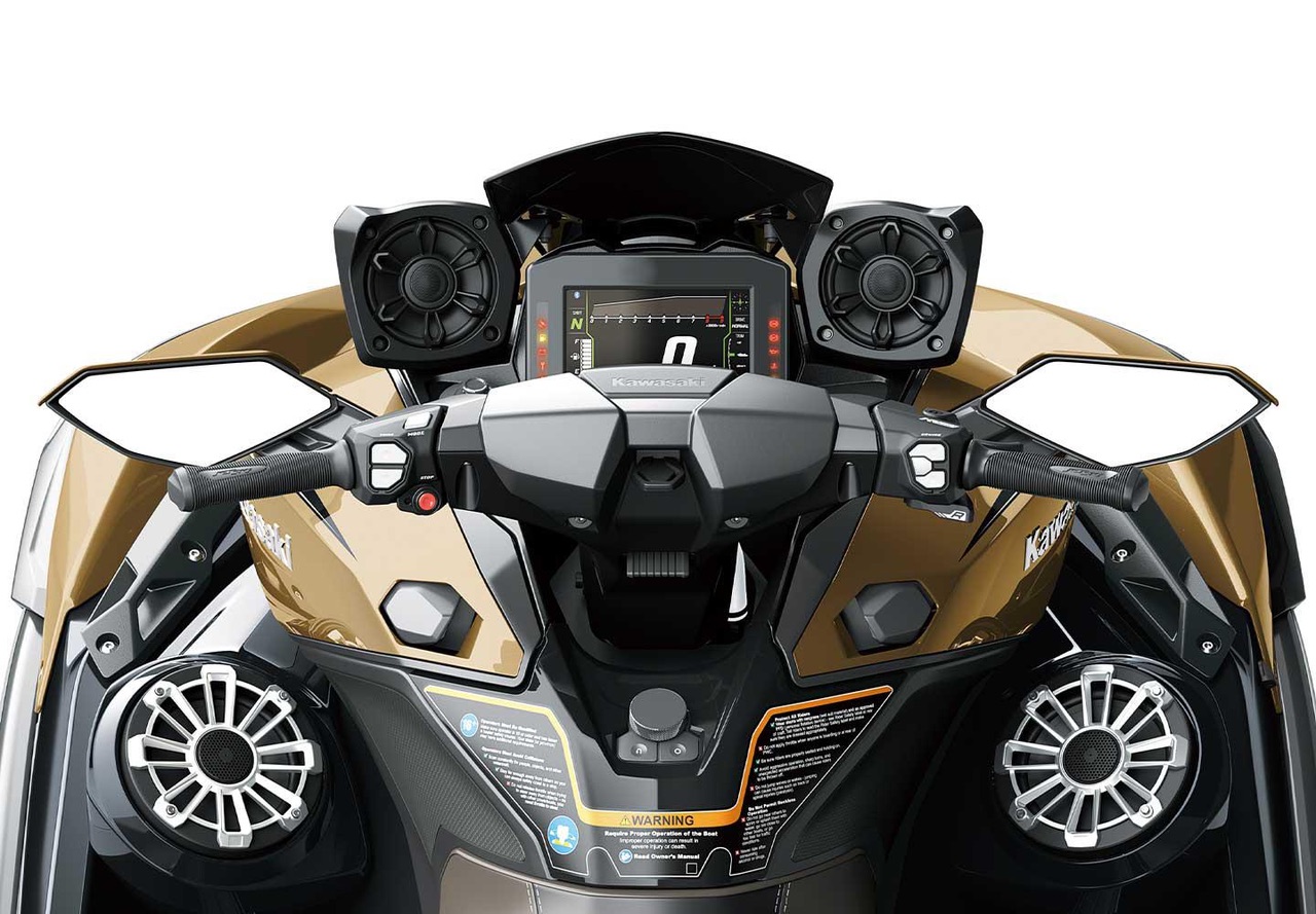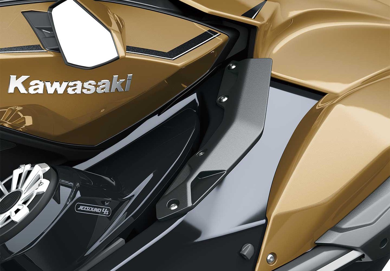 Uma versão melhorada do sistema de áudio PWC original da Kawasaki, o JETSOUND 4s possui quatro alto-falantes, controle por botão giratório e conectividade Bluetooth.