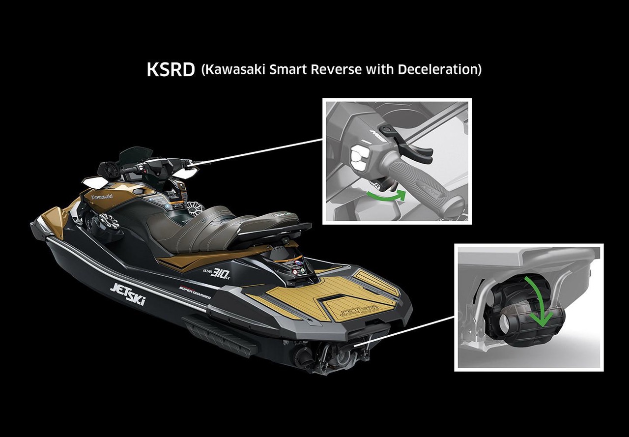 O Kawasaki Smart Reverse com Desaceleração aciona eletricamente a concha de reverso. Acionado por um interruptor de polegar na manopla direita, permite controlar a propulsão com uma mão. Quando acionado, a concha de reverso contribui para a desaceleração.