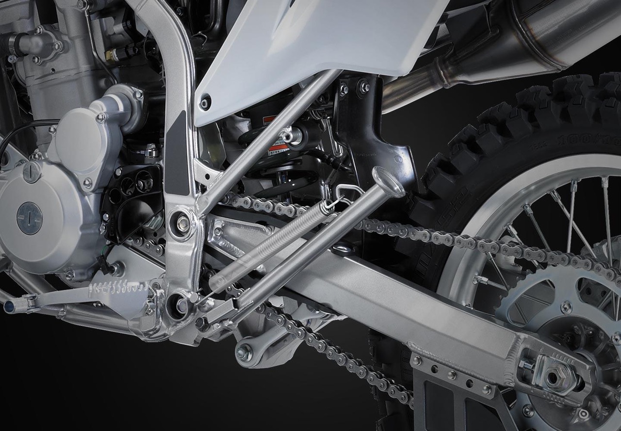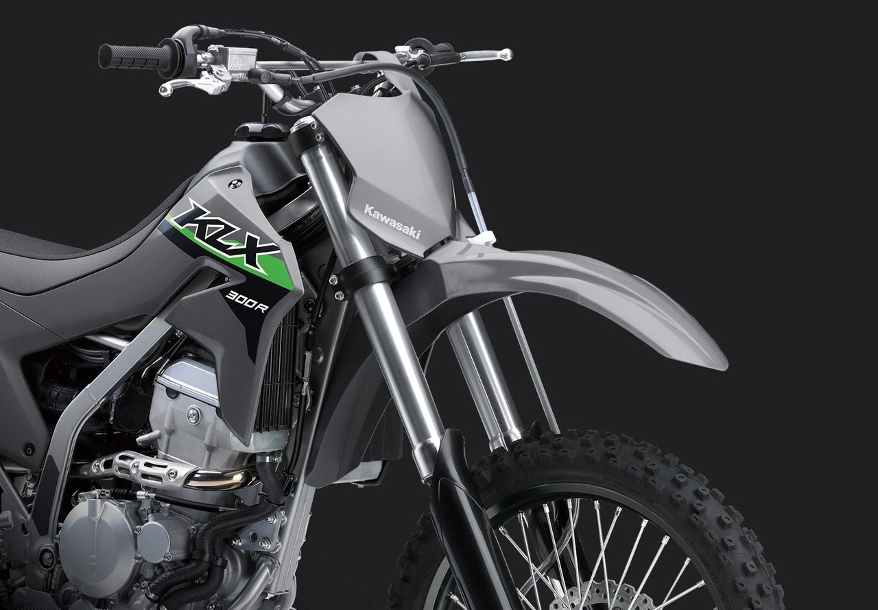 A KLX300R é construída para competir e está equipado com suspensão de longo curso para lidar com confiança com os rigores da pilotagem off-road agressiva.