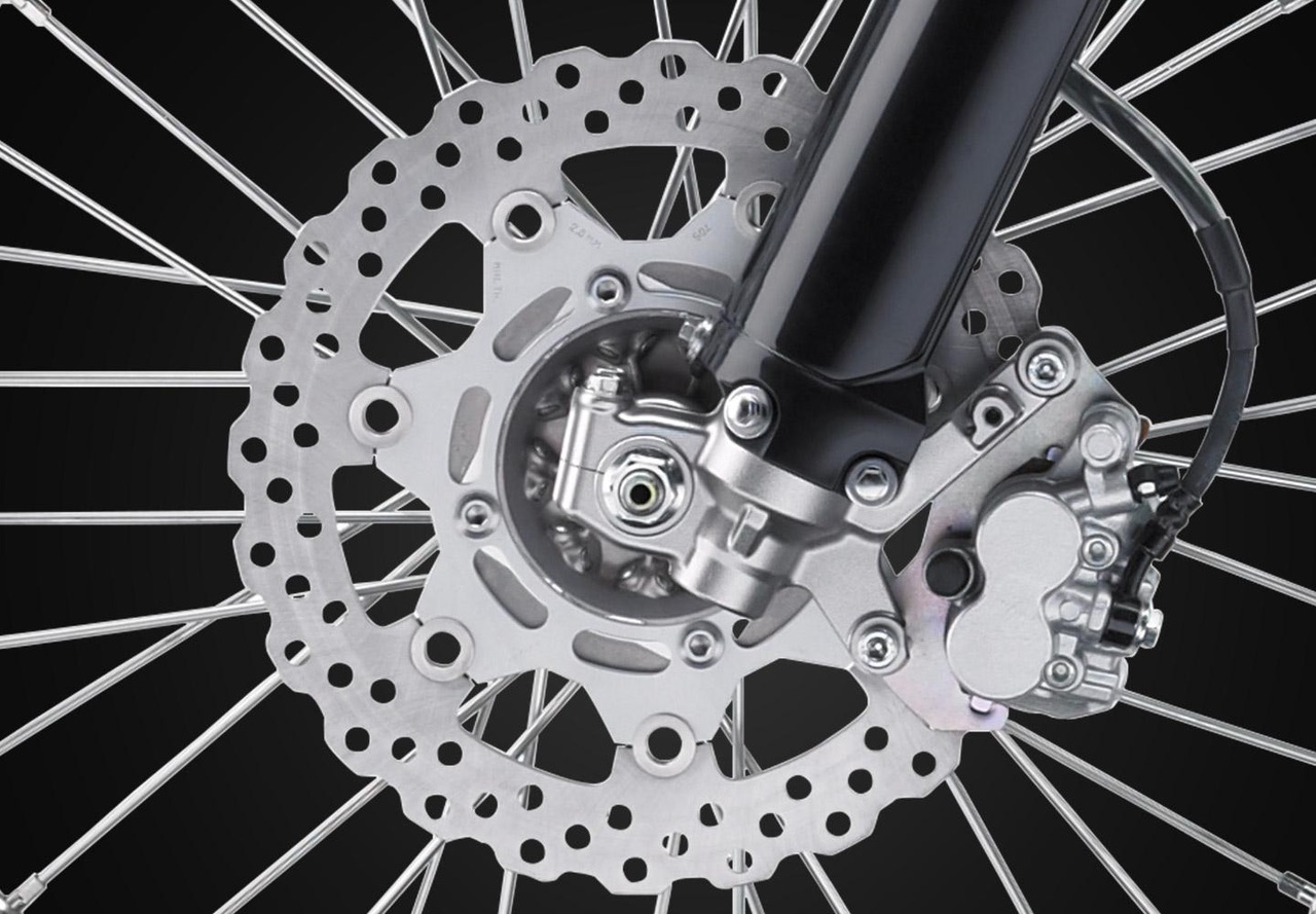 Os fortes freios a disco acrescentam ainda mais confiança e controlo, com uma pinça de pistão duplo para agarrar um disco de pétalas semi-flutuante de ø270 mm na dianteira e uma pinça de pistão único a agarrar um disco de pétalas de ø240 mm na traseira.
