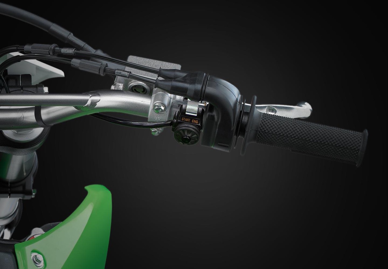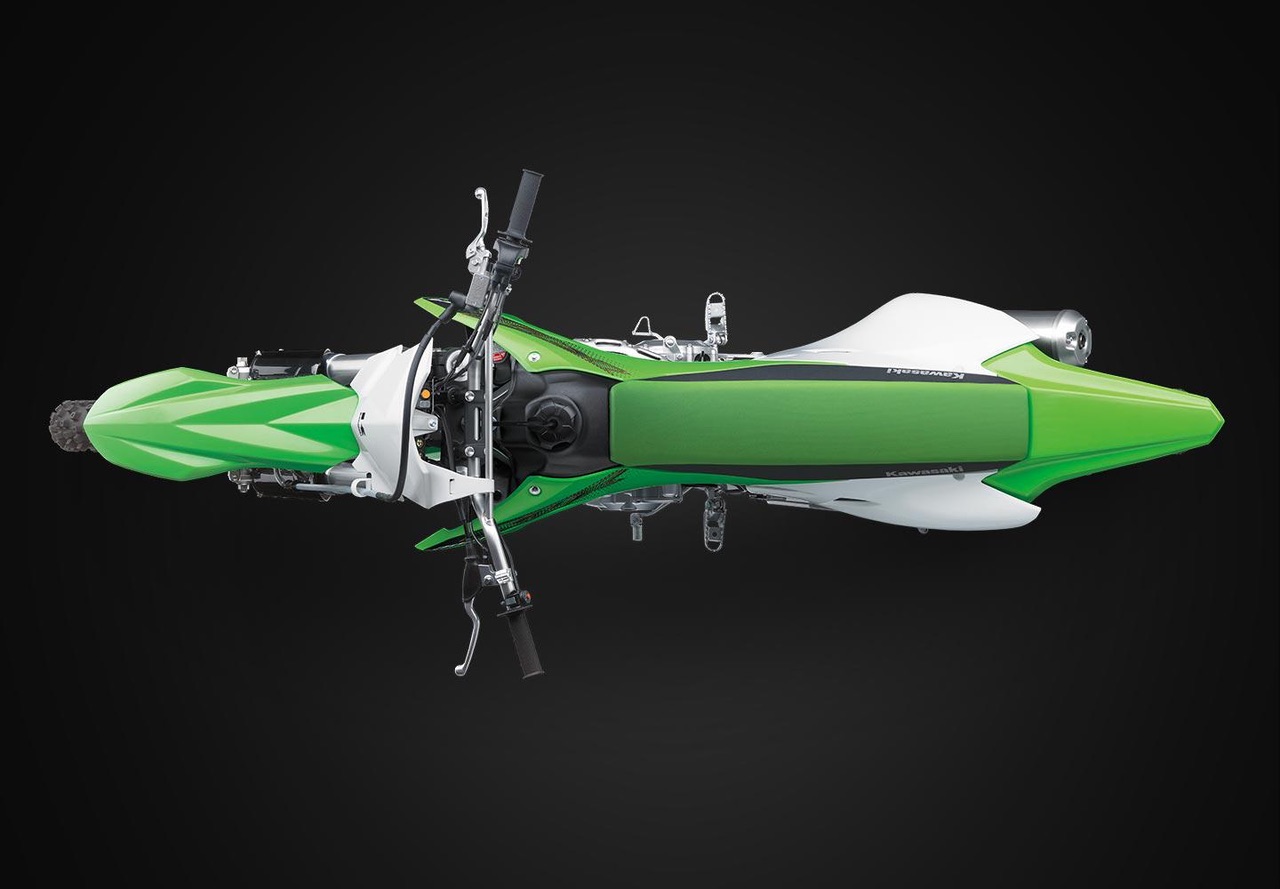 O design fino do quadro e da carroceria ajuda o piloto a segurar a moto para maior controle, enquanto o design do assento inspirado na KX oferece grande liberdade de movimento para passeios off-road.