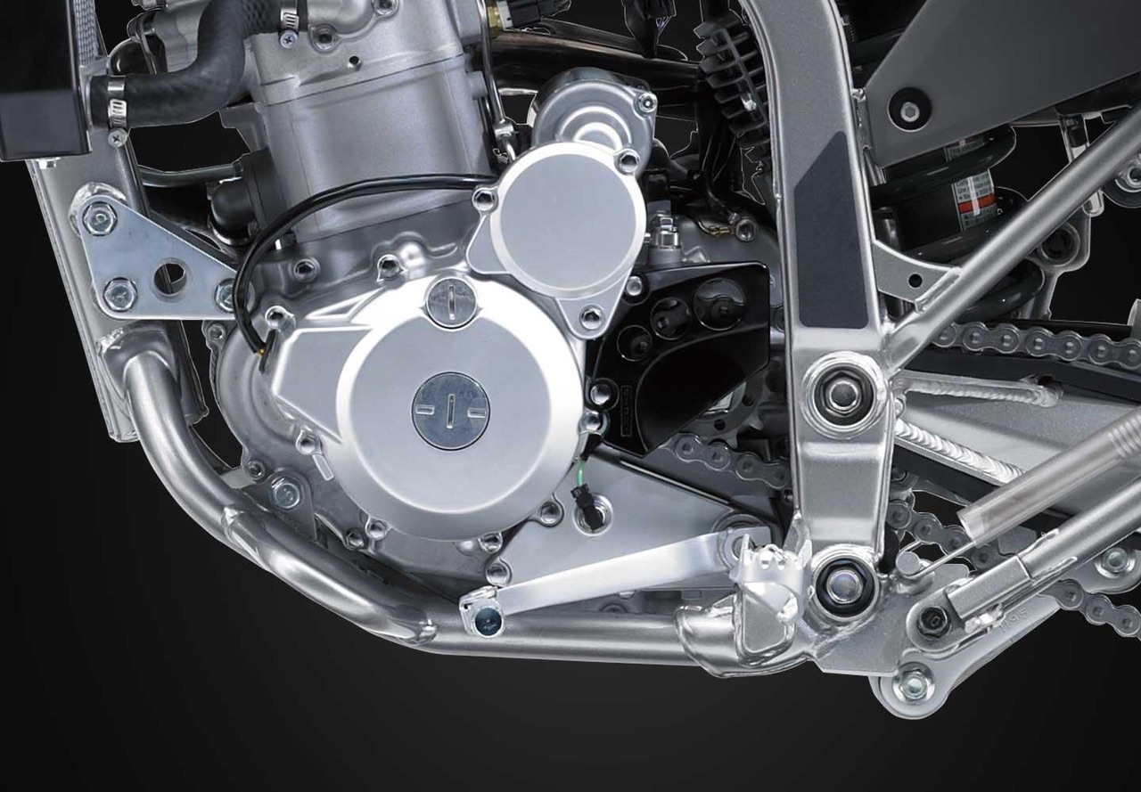 A diversão off-road começa com o Mono cilindro de quatro tempos de 292 cc com injeção de combustível, oferecendo resposta nítida, potência de rotação rápida e forte torque em baixas rotações. A KLX300R é construída com um motor projetado para suportar os rigores de uma trilha difícil.