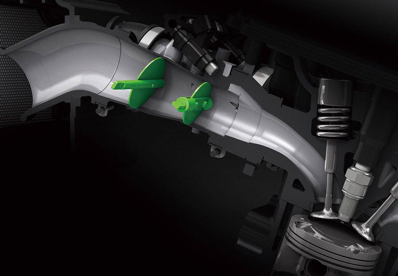 As válvulas de aceleração duplas dão maior precisão no controle do ar de admissão, resultando em uma resposta linear do acelerador em todas as faixas de rotação. As válvulas de aceleração duplas também contribuem para uma melhor eficiência na combustão e deste modo melhoram a performance do motor, bem como tornam o consumo de combustível mais favorável.