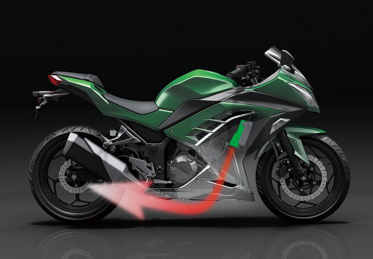 Tecnologias inovadoras da Kawasaki, como a nova grade protetora da ventoinha do radiador (patenteada) localizada atrás do radiador, direcionam o ar quente para baixo e para longe do condutor, aumentando significativamente o conforto quando se está pilotando em tráfego pesado. O desvio do ar quente também ajuda a manter o tanque mais bem refrigerado, o chassi e outras peças de contato com o piloto, aumentando ainda mais seu conforto.