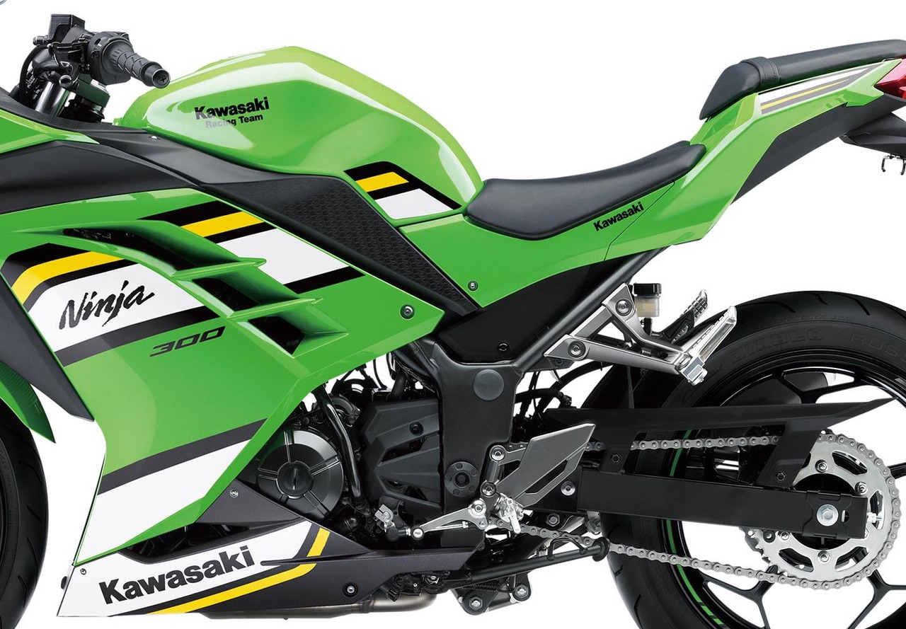 As Ninjas são famosas por suas características de manuseio. O rígido quadro do tipo diamante da Ninja 300 é complementado pela suspensão cuidadosamente ajustada e um pneu traseiro largo para atingir uma performance a nível das pistas. Baixas vibrações, graças ao motor com fixações de borracha e excelente gerenciamento de calor, contribuem para a sensação de alta qualidade na condução.