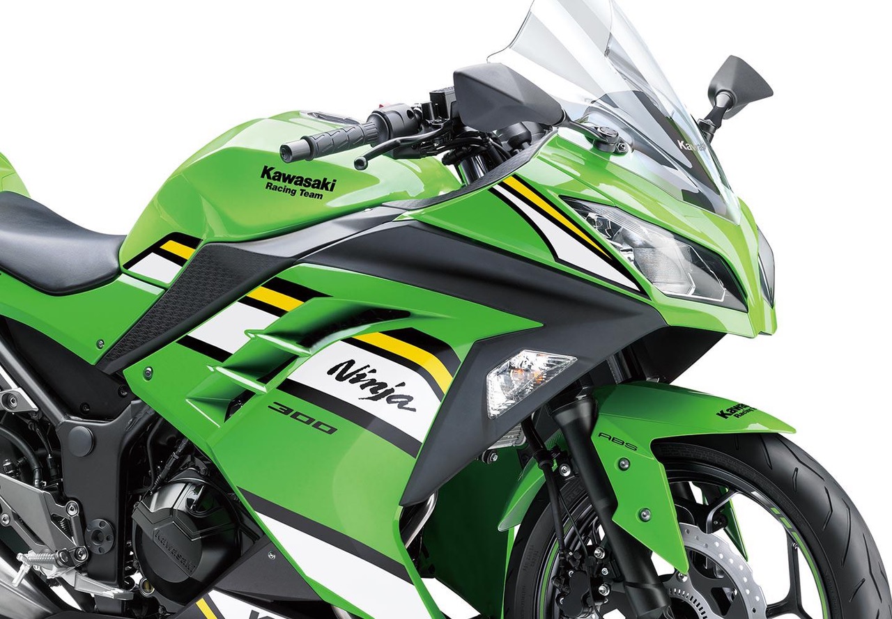 Com sua carenagem volumosa, a Ninja 300 dá a impressão de ser uma máquina maior - uma imagem reforçada por diversas características vindas de nossos modelos Ninja de ponta. Do seu agressivo farol duplo até sua rabeta minimalista, cada superfície da Ninja 300 foi cuidadosamente esculpida para garantir um alto nível de alinhamento e acabamento, silhueta impressionante e presença Ninja inquestionável.
