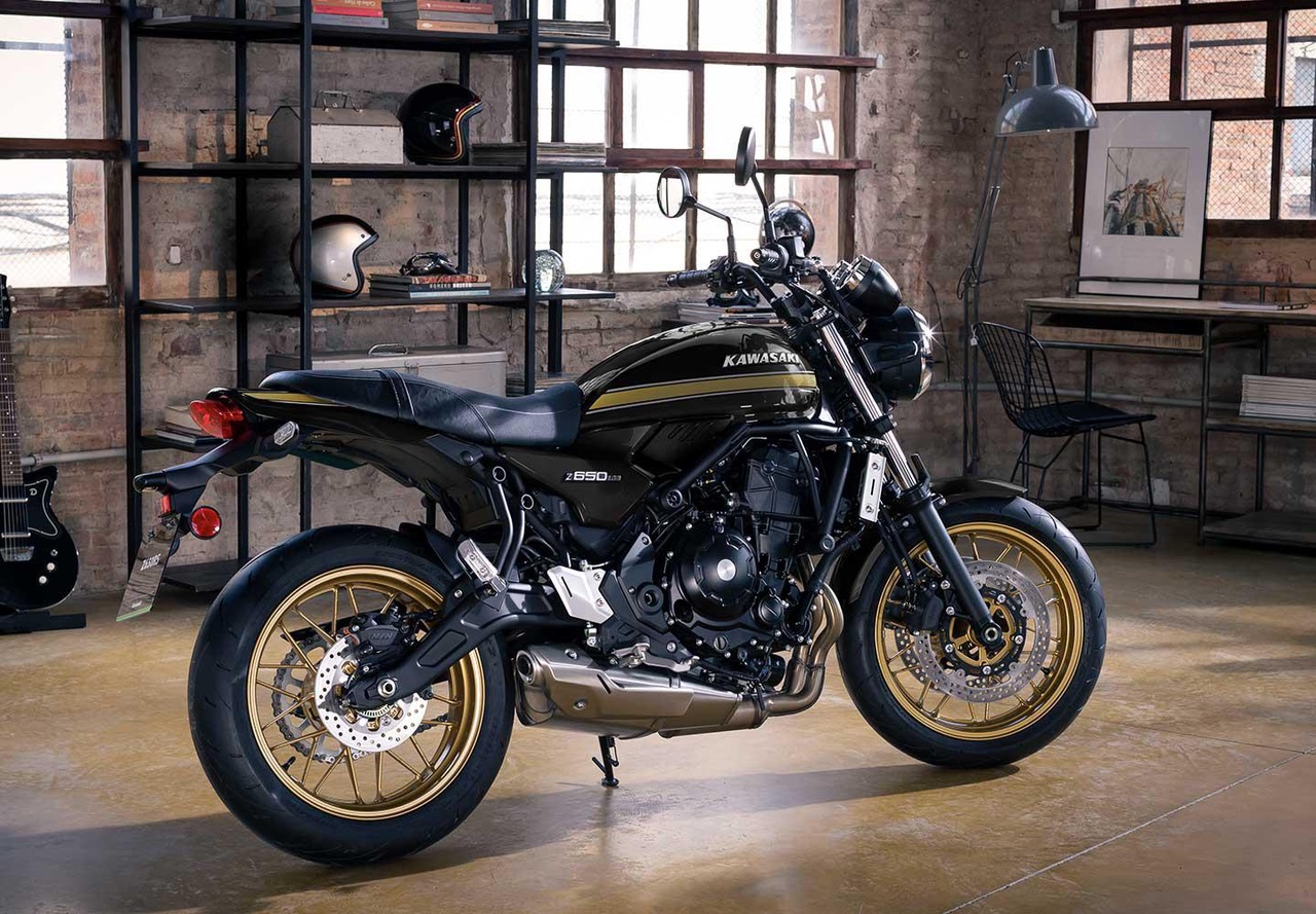 Um modelo de edição especial, o modelo Ebony apresenta listras douradas em seu tanque e cauda. As rodas douradas que lembram as rodas personalizadas disponíveis para os primeiros modelos Z contribuem ainda mais para o estilo retrô da velha escola.