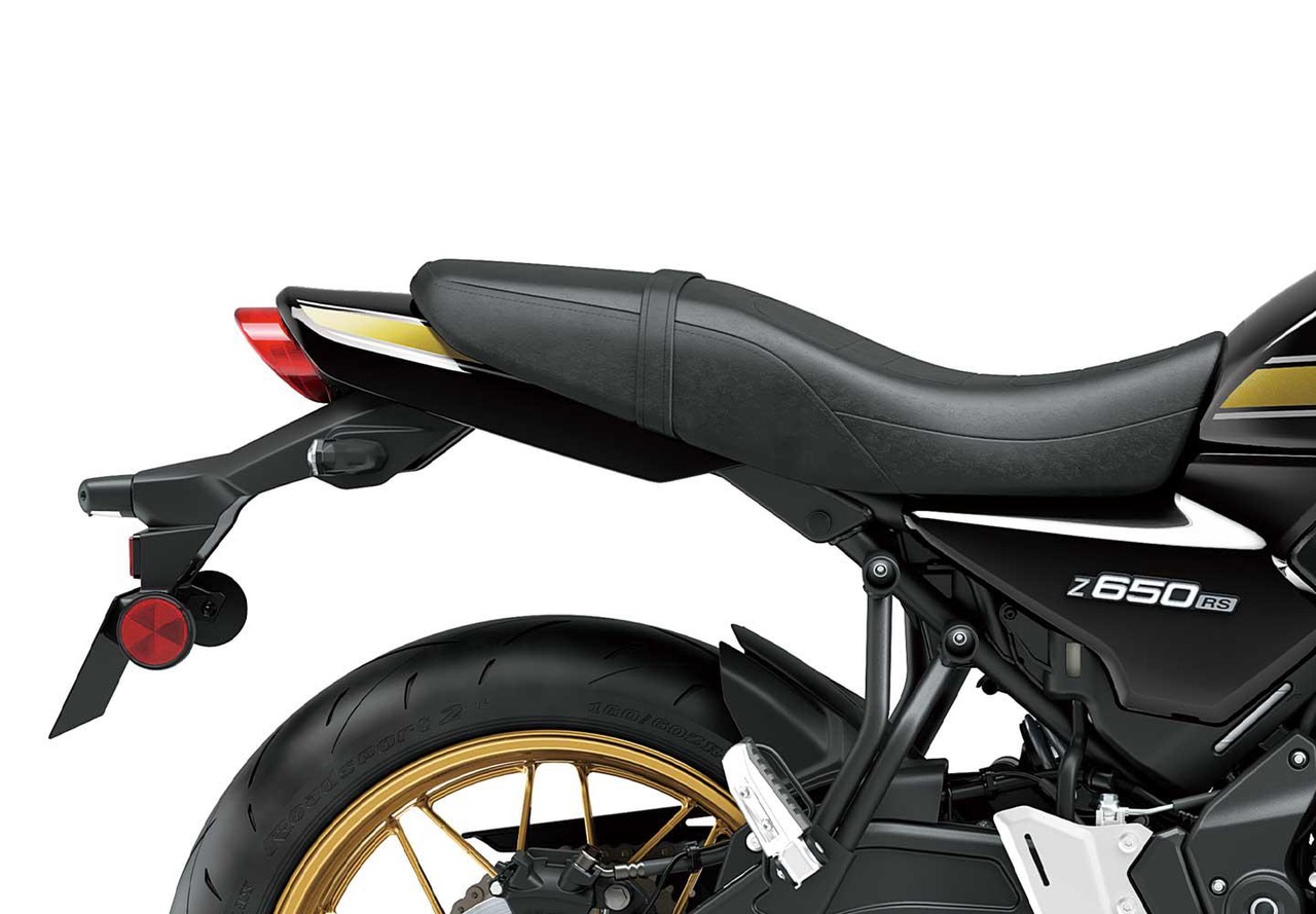 Comparada a rabeta arrebatada da Z650, a da Z650RS traça uma linha horizontal, contribuindo para a postura plana da motocicleta. A rabeta – mais curta que a da Z900RS, na qual reforça o tema de estilo leve e casual – é adornada com uma lanterna em LED. O design único do assento contribui para a aparência retrô esportiva.